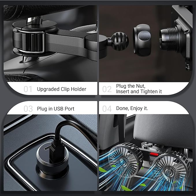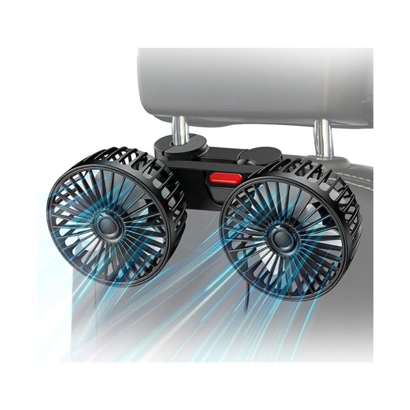 - Our USB backseat car fan features dual rotatable fan heads, delivering strong and powerful airflow for those hot summer days.