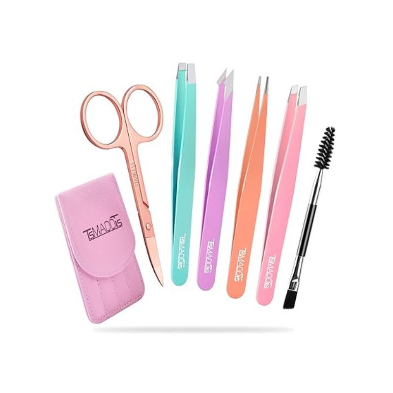 - VALUE TWEEZERS SET:The 6pcs tweezer set come with 4 precision stainless steel eyebrows tweezers,1 curved eyebrows scissors and 1 double side eyebrow brush.Unlike the black one, our tweezers design with bright colors to make you different in the crowd.Perfect for eyebrows shaping, ingrown hair, first aid, facial nose hair tweezers. Grabs hair every time.A must-have beauty kit to meet all your eyebrow shaping routine.