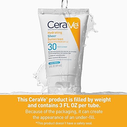CeraVe Hydrating Sheer Sunscreen SPF 30 for Face and Body