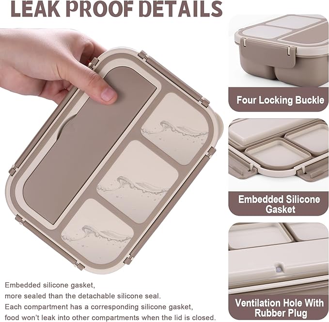 - With 4 Compartments: Bento box adult lunch box has 1200ml / 40oz capacity, with 4 compartments for different kinds of food. Separate compartments to maintain the original flavor of the food. Perfect capacity size is suitable for all ages.
