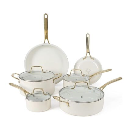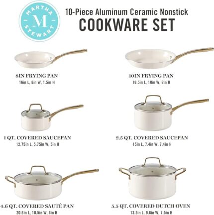 Martha Stewart Lockton Premium Nonstick PFA Free Ceramic Interior 10 Piece Heavy Gauge Enamel Aluminum Pots