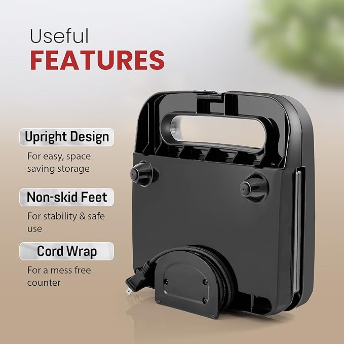 Save time in the mornings and make perfectly toasted, gourmet pressed sandwiches with the Elite Gourmet Sandwich Maker. This unique unit features easy to clean cooking plates for pressing your favorite sandwiches! The dual non-stick cooking surface saves time and makes cleaning quick and easy. Its upright design allows for easy storage and its cool-touch handle is safe to the touch. It also includes a locking latch for assured safety. Makes perfectly toasted pocket sandwiches in less than 5 minutes, start to finish